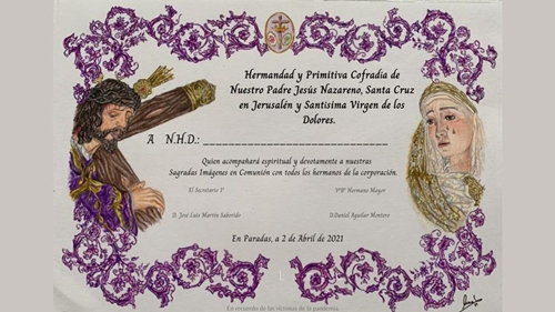 La Hermandad ofrece esta papeleta extraordinaria convencida de que, aunque no realicemos nuestra Estación de Penitencia por las calles de Paradas, nuestros hermanos sí vivirán su particular estación de penitencia interior y en comunión el próximo Viernes Santo, sintiendo la presencia de Ntro. Padre Jesús Nazareno y la Stma. Virgen de los Dolores en sus vidas sobre todo en estas circunstancias que nos ha tocado vivir. Para la corporación, esta papeleta será un recuerdo de este Viernes Santo que vivimos de una forma distinta, pero con el mismo sentido de HERMANDAD.