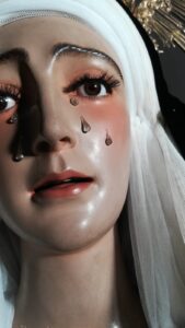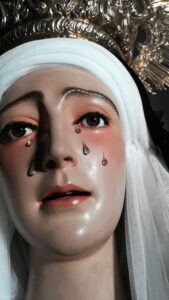 En la tarde del pasado miércoles 14 de abril, debido al deterioro de las pestañas de la Santísima Virgen de los Dolores, se procedió a la sustitución de las mismas.