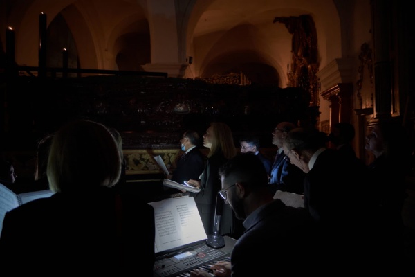 Durante la Veneración, recuperamos un acto que forma parte de nuestra seña de identidad, el Sermón de Pasión. Hecho histórico que ha vuelto a ser parte de nuestra historia después de varias décadas sin llevarlo a cabo. En el mismo, se interpretó un diálogo sobre la Pasión de Jesús, intercalando oración, piezas musicales a cargo de nuestro director de coro, Jesús Oliva al piano, N.H.D. Javier Cenizo Palma al clarinete y N.H.D. Alicia Belmonte Rueda al saxofón, e interpretación de saetas antiguas por Pepa Flores.
