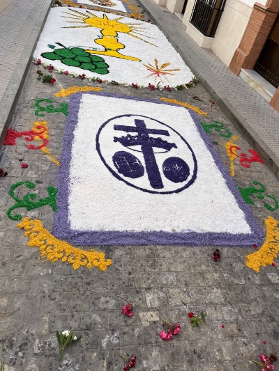 Altar de nuestra Hermandad y alfombra de sal realizada por el Grupo Joven, para la Procesión de su Divina Majestad. ¡Alabado sea Jesús Sacramentado. Sea por siempre bendito y alabado! Comparte en tus perfiles